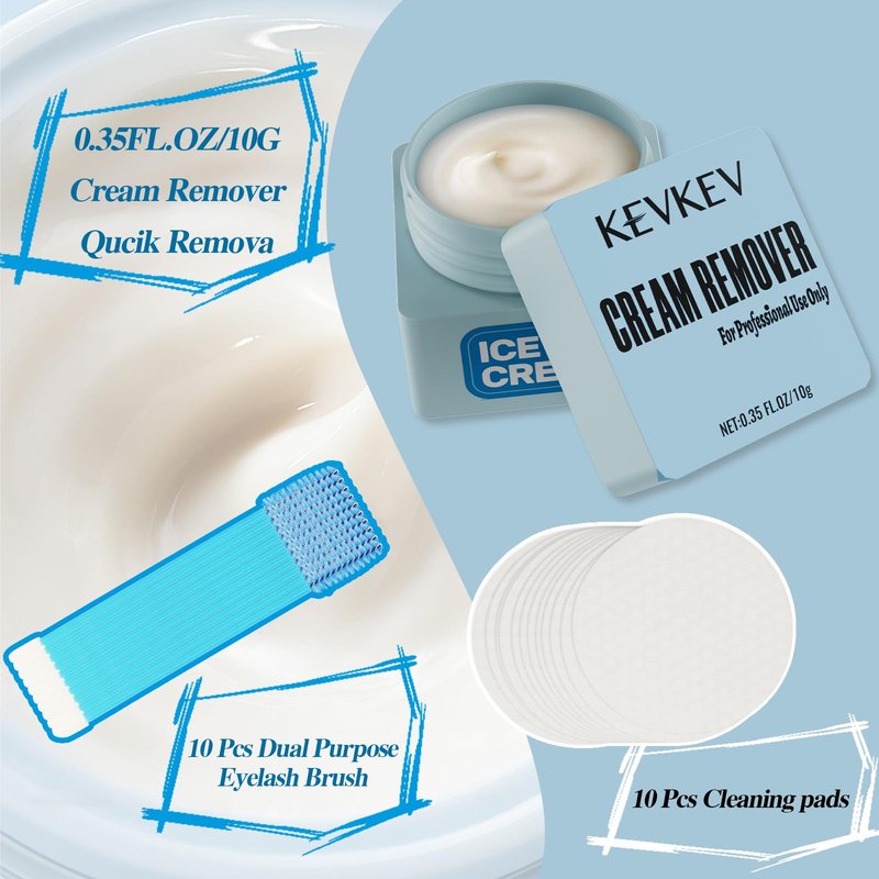 - What's in the KevKev Scented Cream Remover Kit: This Remover kit contains a 10g Eyelash Extension Remover, 10 pcs multifunctional brush and 10 pcs cotton pads for removal. This range of gel removers comes in two scents: hami melon and ice cream. The light fragrance will bring you a pleasant experience.