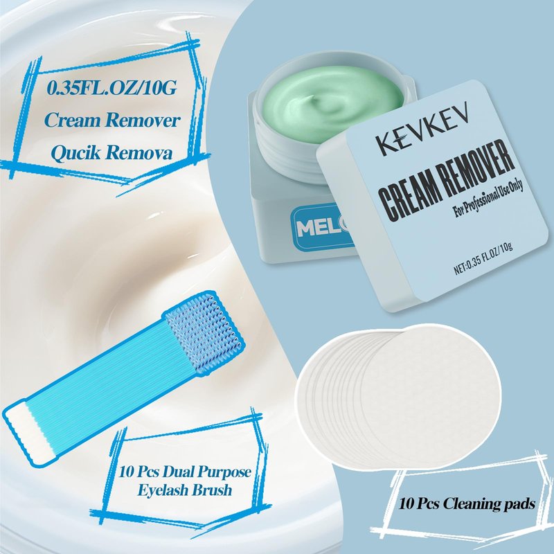 - What's in the KevKev Scented Cream Remover Kit: This Remover kit contains a 10g Eyelash Extension Remover, 10 pcs multifunctional brush and 10 pcs cotton pads for removal. This range of gel removers comes in two scents: hami melon and ice cream. The light fragrance will bring you a pleasant experience.