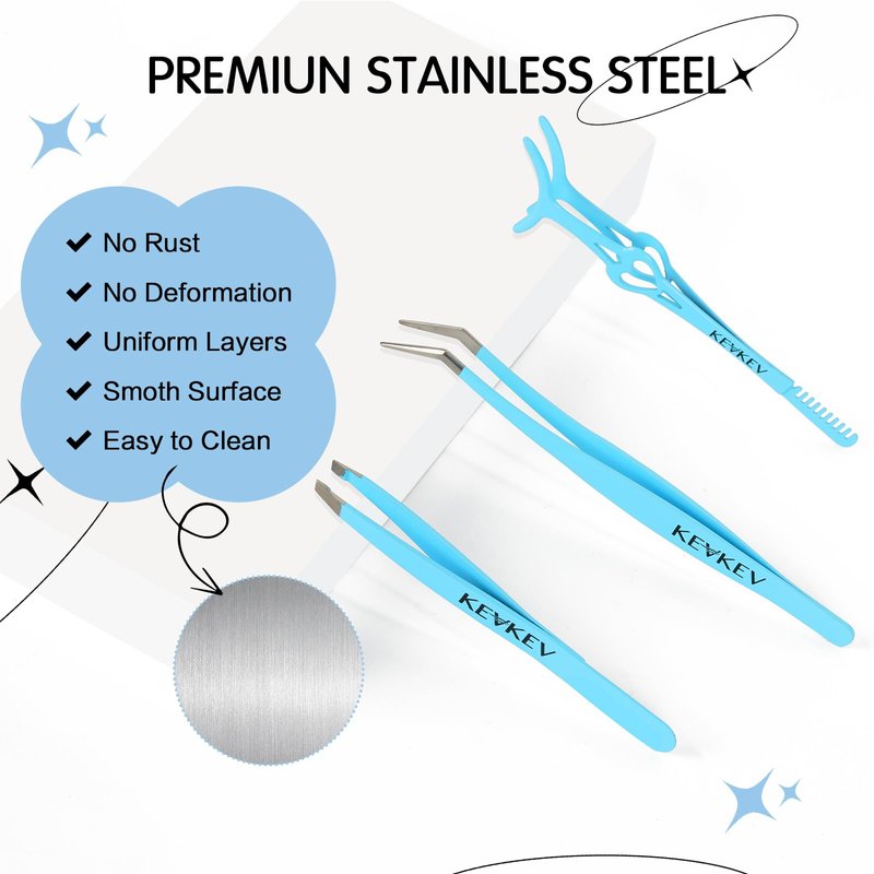 - KEVKEV 3in1 Lash Tweezers Kit: Elevate your lash game with our three-in-one eyelash tweezers set. Whether you're a lash enthusiast or a professional, with three different styles of tweezers, you can tackle any lash challenge effortlessly.