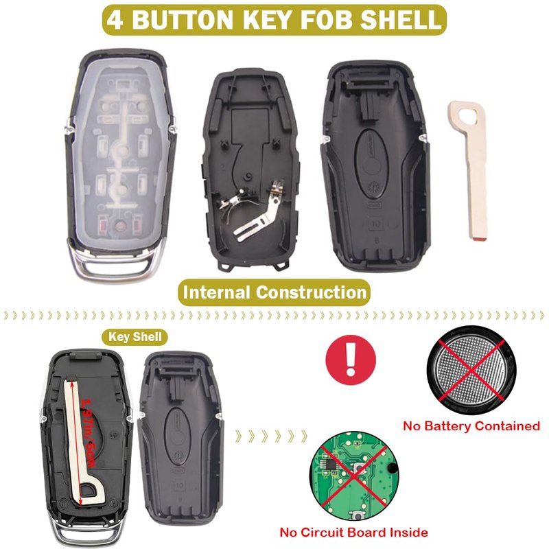 1. Only plastic car key fob shell and uncut key blade included, No electronics inside ( No remote / No battery / No transponder chip ).