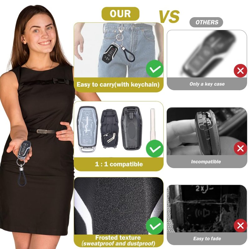 - 【Keyless Entry Remote Control Car Key Fob Shell Replacement】Best replacement for a key fob with broken buttons or worn key case. Designed with 1:1 original key fob mould, perfect match with your original key fob. The key fob buttons are very sensitive and does not affect the key signal.