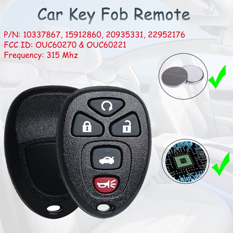 - 【Replacement 】For Rmote's P/N: 10337867, 15912860, 20935331, 22952176; FCC ID: OUC60270 & OUC60221; For Key's: 15871576 CHIP 46; For Car Model Buick: 2006-2011 Lucerne; For Cadillac: 2006-2011 DTS; For Chevrolet: 2006-2013 Impala/2006-2007 Monte Carlo.