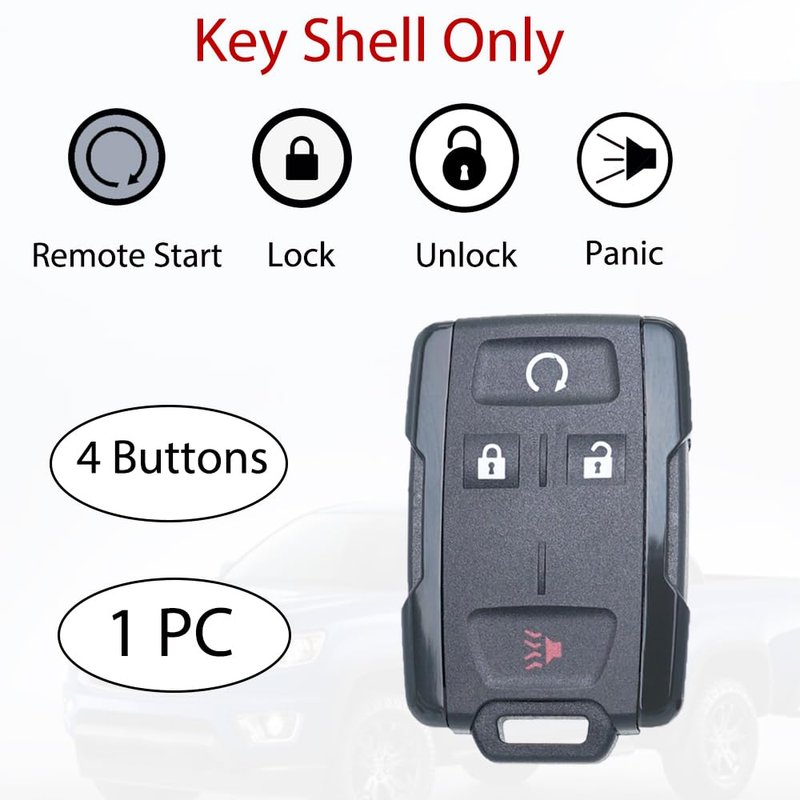 Key Fob Shell Case Replacement for Chevy Colorado Silverado GMC Canyon Sierra 2014 2015 2016 2017 2018 2019 2020 2021 Keyless Entry Remote Control 4 Buttons Pad Cover M3N-32337100 M3N-32337200 Black