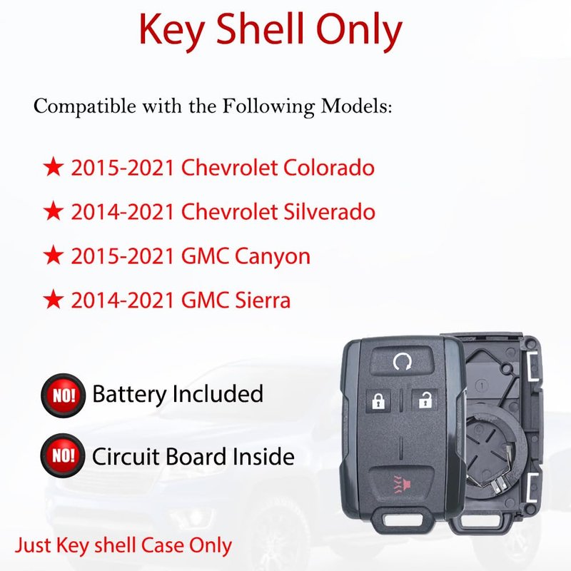 - 【Fitment】An empty key fob cover shell replacement for Chevrolet 2015-2021 Colorado, 2014-2021 Silverado; for GMC 2015-2021 Canyon, 2014-2021 Sierra, FCC ID: M3N-A2C31243300.