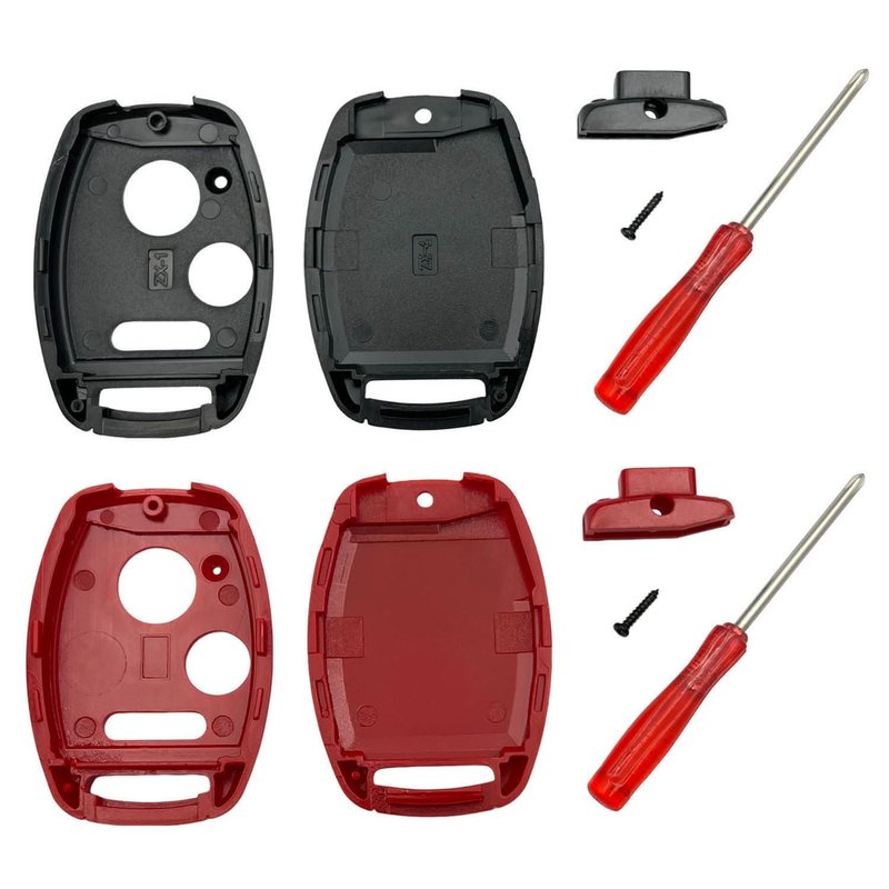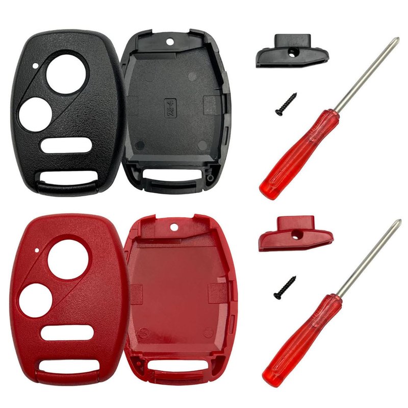Key Fob Shell Case Replacement for Honda Accord Crosstour Civic Odyssey Fit CR-V CR-Z Key Fob Cover with Screwdriver (Black+Red)