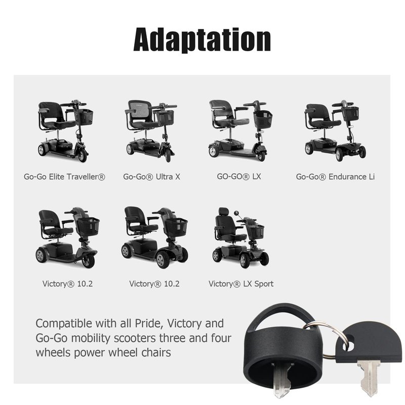 - 【Perfect Fit】Fit for Pride Power Chairs, Victory Wheel Chairs, and Go Go Power Wheel Chairs. The known compatible models are listed in the product description. Our keys work like a charm.