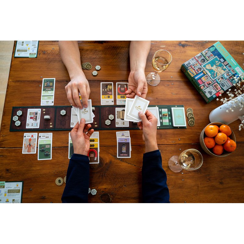 - MASTERMIND THE PERFECT SCHEME: Vie for control as you pick your crew, equip them with the right gear for the job, and grab the loot from an ever-changing array of international locations. Draft the right cards to outwit your opponent and thwart their plans!