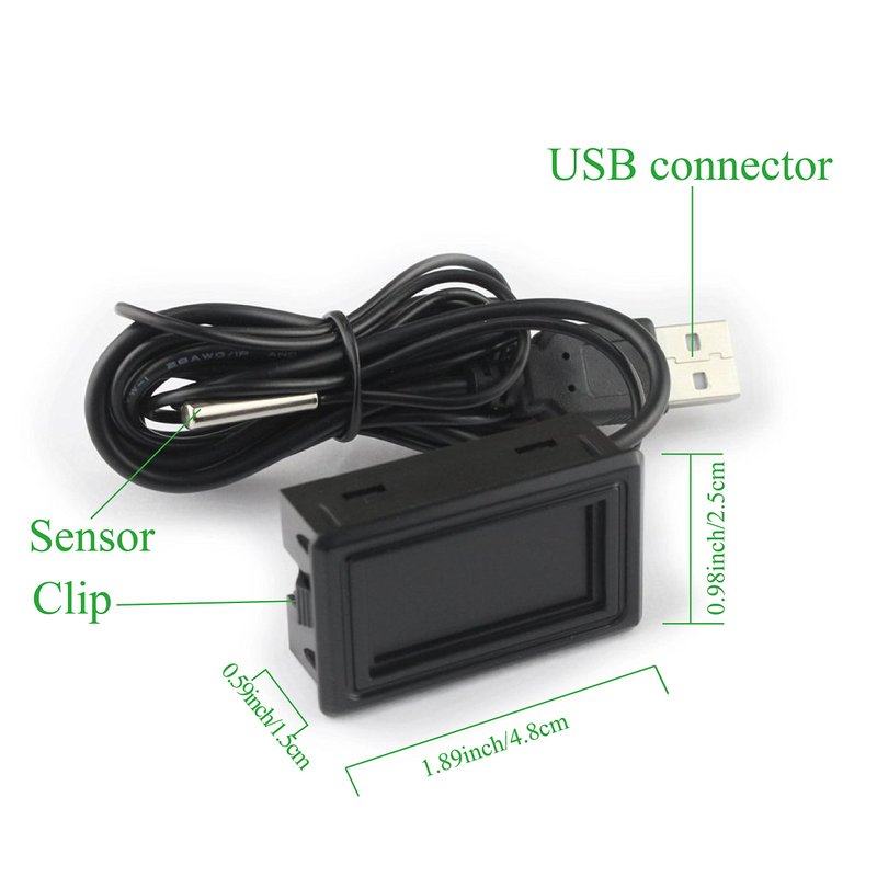 - 【Specification】①Size:1.89"x1.1"x0.67"; ②Temperature range: -58F ~ +230F (-50°C ~ +110°C) ③Accuracy: ±1℃; ④Measurement interval: 0.25S; ⑤ Input: DC 4~25V; ⑥ Cable: 1 meter; ⑦Temperature display unit: ℃/ ℉ switchable