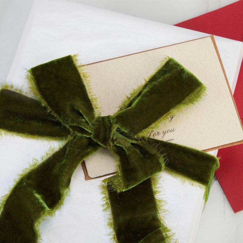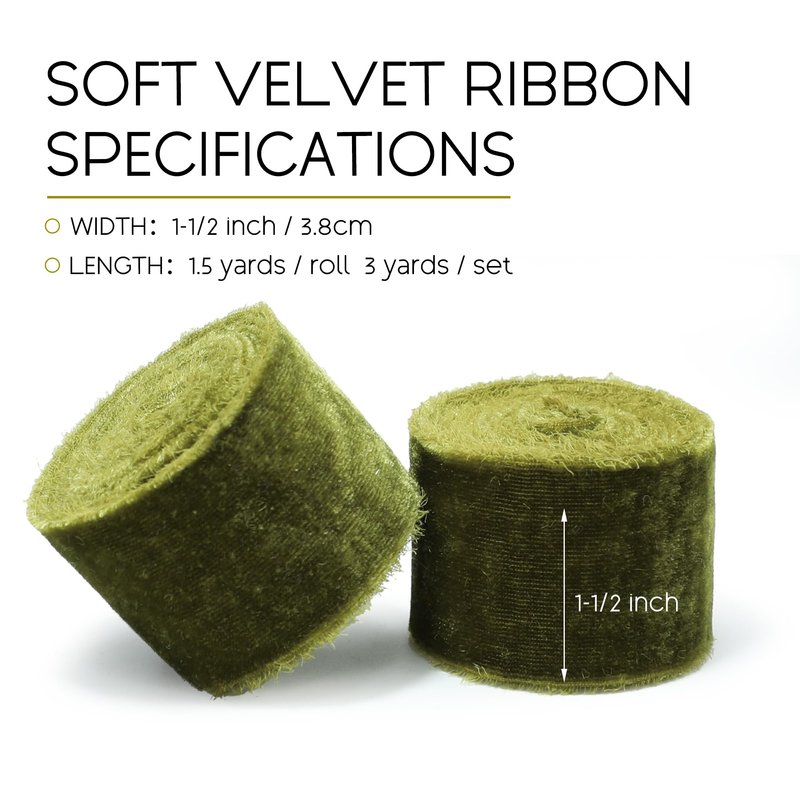 Keypan Chirtsmas Tree Ribbon Olive Green Velvet Ribbon for Gift Wrapping - 1 1/2 inch Wide Handmade Fringe Fabric Ribbon for Winter Decor Baby Shower, Flower Bouquet