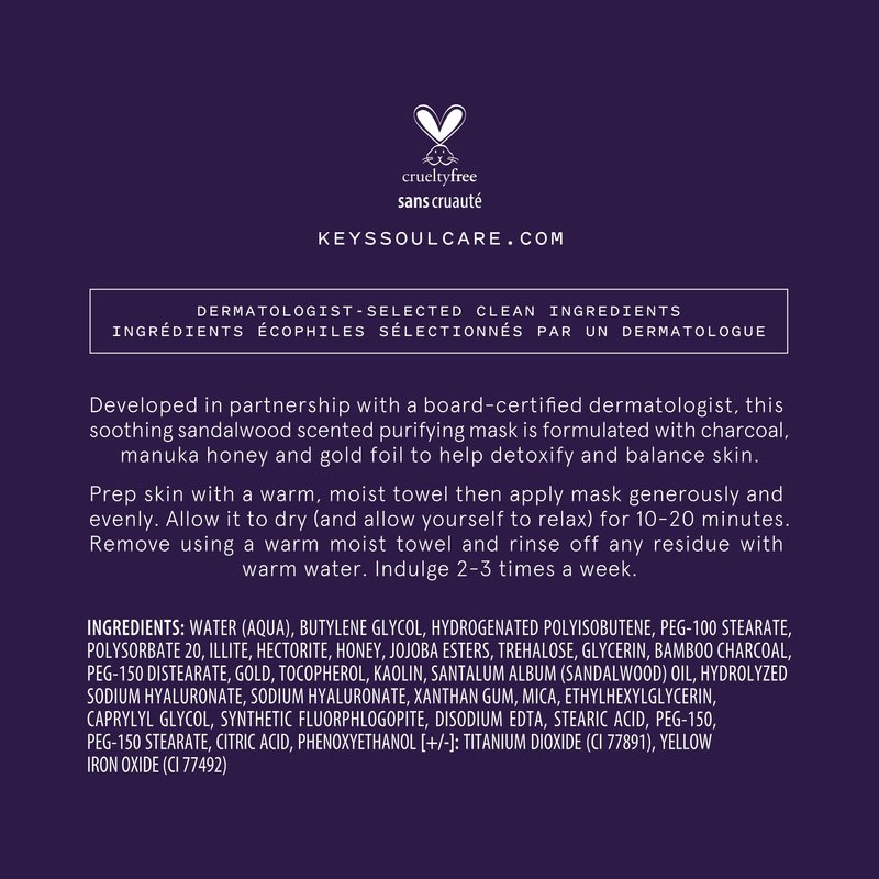 Keys Soulcare Harmony Mask with Manuka Honey, Balancing Charcoal Face Mask Purifies, Hydrates, Soothes & Calms for Radiant Skin, Cruelty-Free, 1.76 Oz