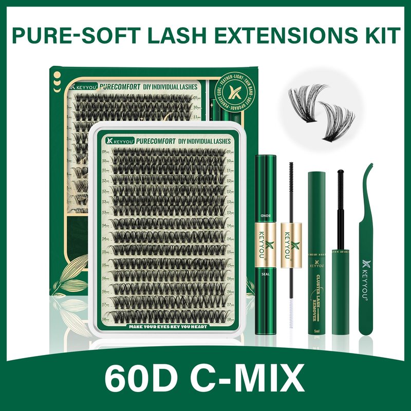 - 【You Will Get】KEYYOU Lash extension kit include:300pcs soft lash clusters (60D),lash bond and seal*1,lash applicator*1,lash remover*1 in one box.Easy to complete a perfect eyelash extension,create your own beauty at home and save money and time,more convenient.