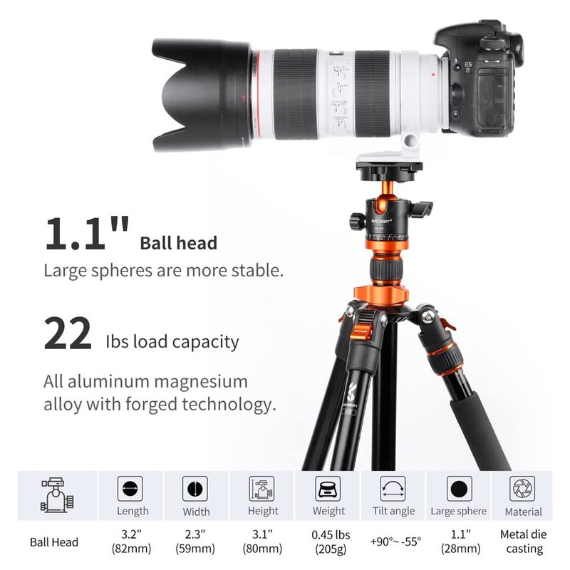 K&F Concept Professional 28mm Metal Tripod Ball Head 360 Degree Rotating Panoramic with 1/4 inch Quick Release Plate Bubble Level for Tripod Monopod Slider Camera Camcorder up to 22 pounds