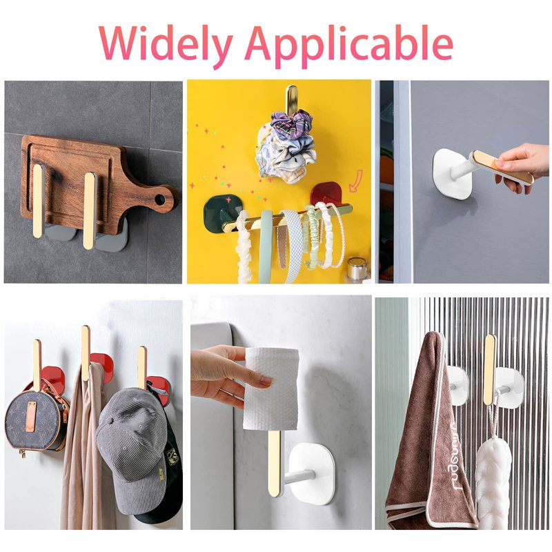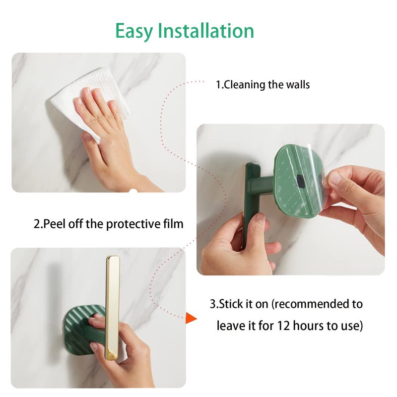 - 【Easy To Use】Plastic L-shaped hook and transparent non-marking patch, seamless installation, very firm after sticking to the wall, no damage to your wall, good adhesion, strong load-bearing.