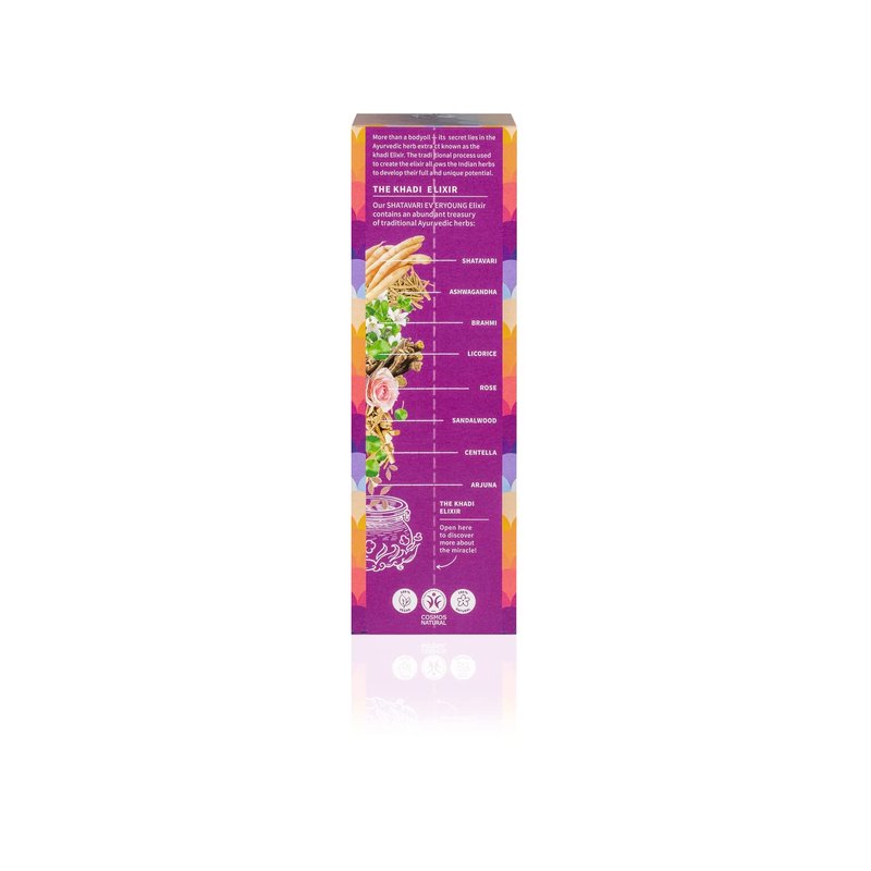 - khadi Shatavari Everyoung Elixir tones your skin – for visibly greater elasticity and firmness