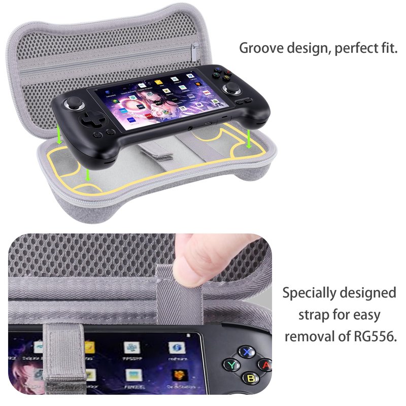 - [Multifunctional internal design]: A buckle and Velvet material designed specifically for the Anbernic RG556 Retro Handheld Game Console avoid impact, and improve the lifespan of the RG556 Retro game console. In addition, it comes with a mesh bag design that can store data cable accessories required for new anbernic RG556 Retro.