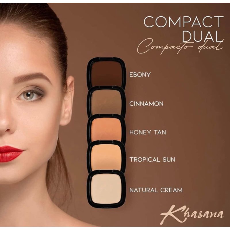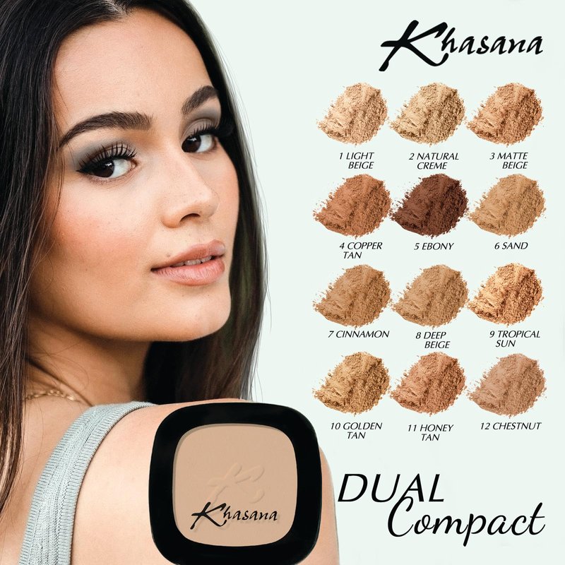 - BUILDABLE COVERAGE: Dual Compact Foundation with a full-coverage color formula gives you a look uniform and impressively natural, no cake looks and sweat proof. KHASANA NATURAL BEAUTY: Highlight your natural beauty with our full line of makeup including foundations, concealers, highlighter makeup, brow pencils, eyeshadow palettes, lipsticks. Enjoy your natural beauty with the look you want.
