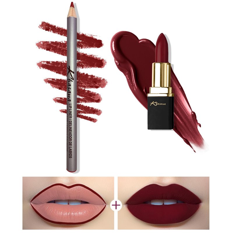 Khasana Lipstick and Lip liner Set, Matte Finish, Vitamin E and Vitamin C Infused for Nourishment, and Hydration, Long Lasting Creamy Formula, Color Matched Gift Pack (ADDICTED TO LOVE)