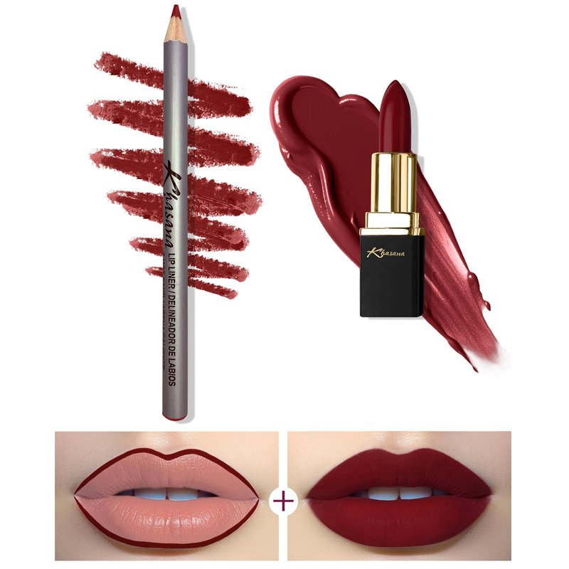 Khasana Lipstick and Lip liner Set, Matte Finish, Vitamin E and Vitamin C Infused for Nourishment, and Hydration, Long Lasting Creamy Formula, Color Matched Gift Pack (TAKE ON ME)