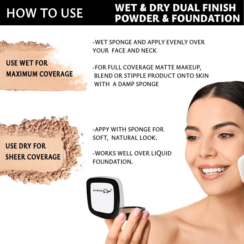 - DUAL WET & DRY FOUNDATION: Khasana Wet and Dry Foundation-Powder helps absorb oil during your day, helping makeup last longer & skin look smoother. This compact comes with a sponge, so you can apply your foundation flawlessly each time.
