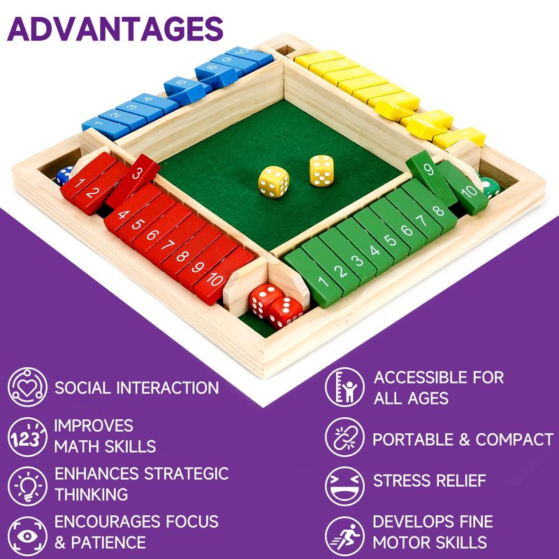 - [ Fun and Educational Experience ] 🔢 Shut The Box is not just entertaining; it also helps enhance math skills and strategic thinking. Whether in a classroom or at home, this engaging game makes learning enjoyable for kids while keeping adults entertained.