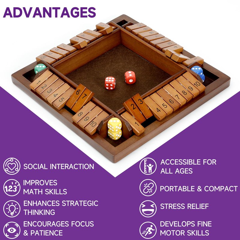 - [ Fun and Educational Experience ] 🔢 Shut The Box is not just entertaining; it also helps enhance math skills and strategic thinking. Whether in a classroom or at home, this engaging game makes learning enjoyable for kids while keeping adults entertained.