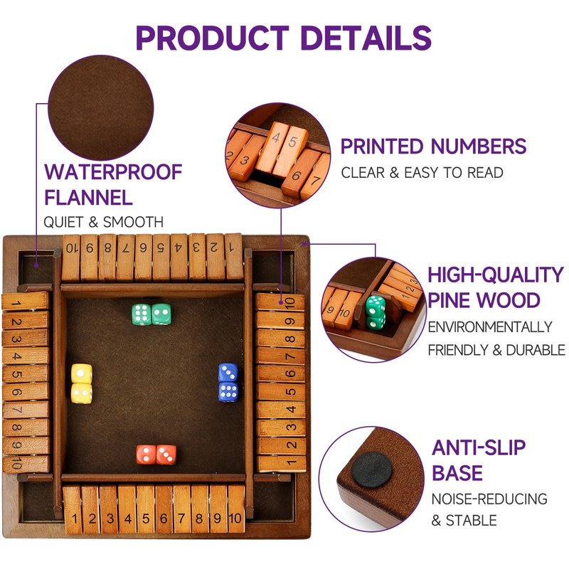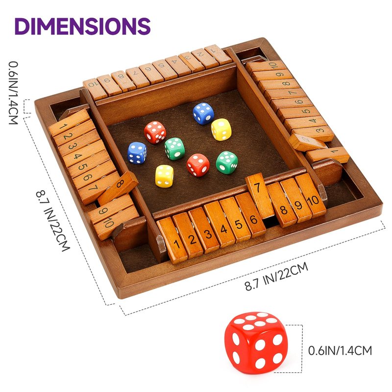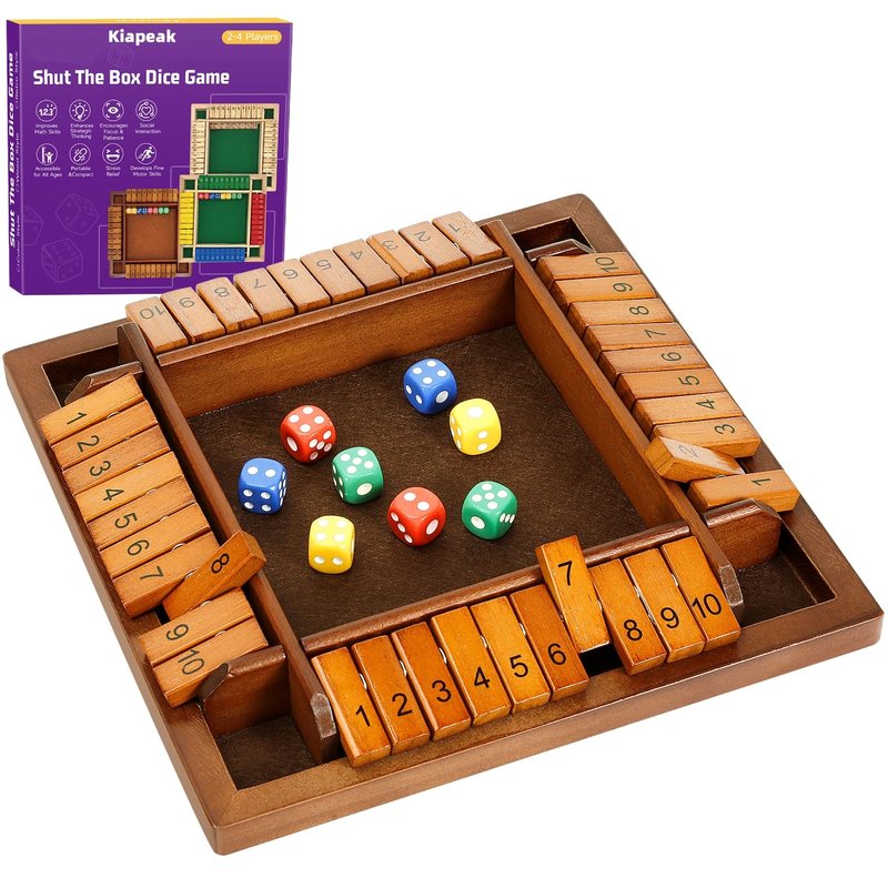 - [ Perfect for Family Gatherings & Parties ] 🎲The Kiapeak Shut The Box Dice Game brings everyone together! Ideal for 1-4 players, this classic wooden game is perfect for family game nights, lively parties, or casual fun at the pub. Experience laughter and competition as you play!
