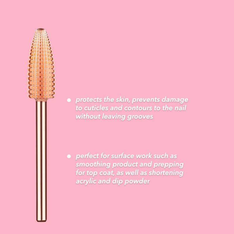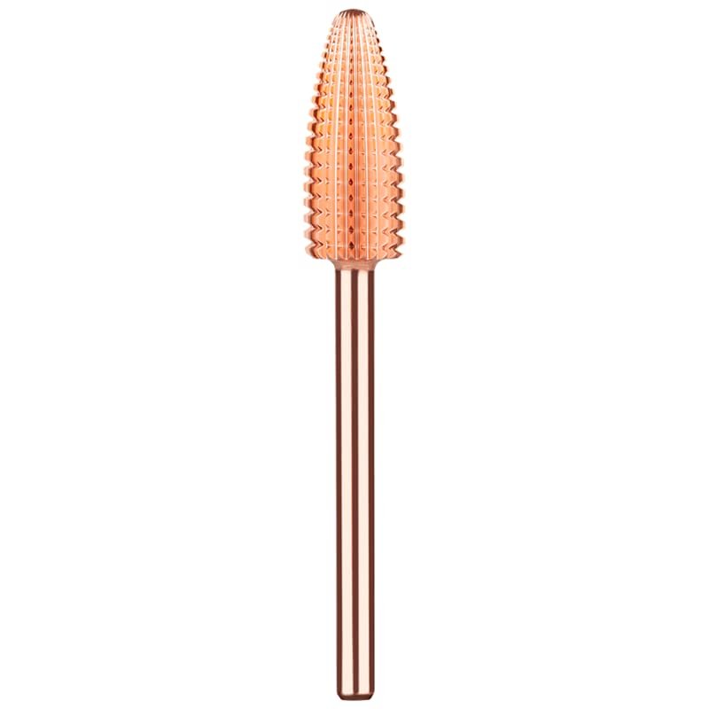 Kiara Sky's Typhoon Medium Bit is a rose gold coated carbide bit designed specifically to remove product as quickly as possible. Its medium texture is perfect for backfills and product removal, making soak off time a breeze! It's also perfect for removing gel, dip powder, and acrylic! "Kiara Sky's Collection of Drill Bits includes a set of 11 bits designed to improve speed and quality in your salon. Easily remove product, change the shape of your client's nails or do a fill in no time. The versatility of this collection, along with the quality of the drill bits, will improve your speed and technique with minimal effort."