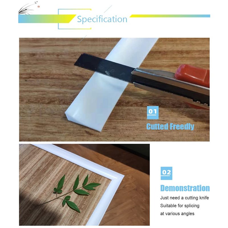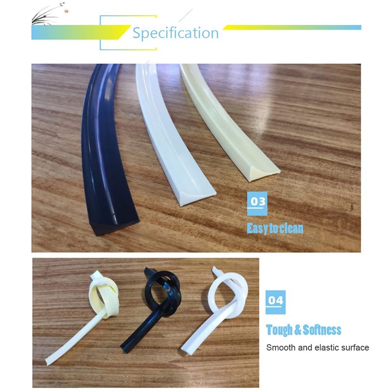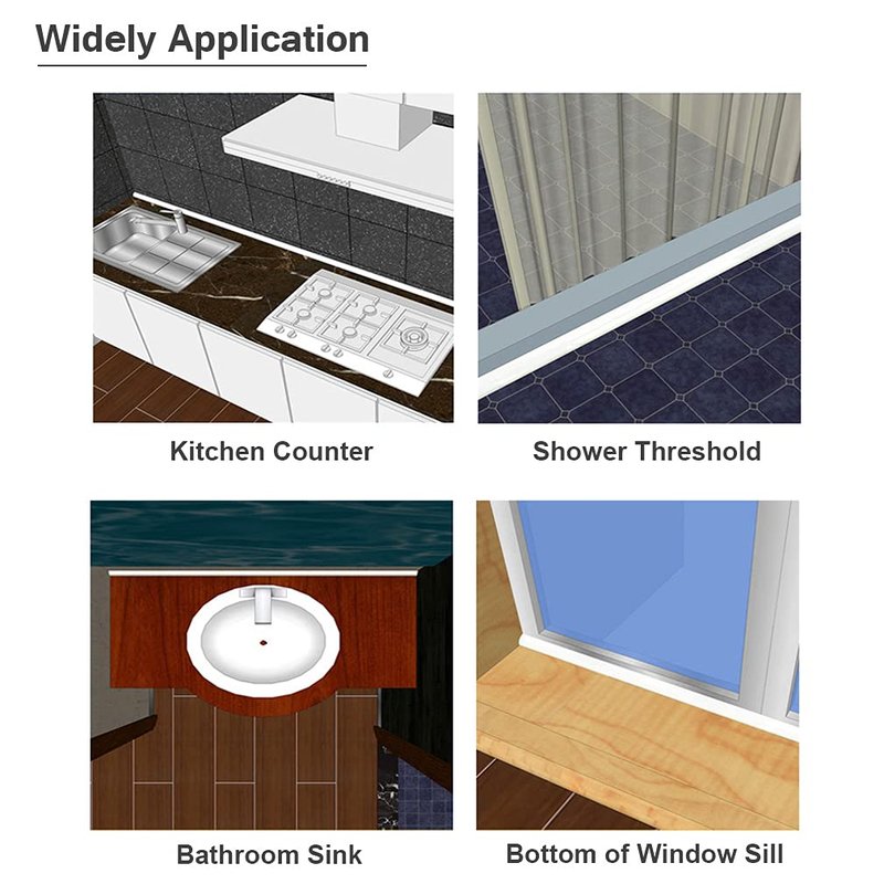 Name: Silicone Shower Threshold Water Strip Dam. Description: Made of high-quality environment silicone, safe and flexible, can be cut to size as your needs. Has the traits of security, softness, corrosion resistance, excessive temperature and abrasion resistance. The shower dam not only can be installed on the floor, but also can as counter water strip dam for bathroom and kitchen sink surrounding to block the water flowing down. Used in public places like schools, hotels and shopping malls etc, reduce the work of cleaning staff, avoid the trouble of the floor wet. Specification: Material: high-quality environment silicone Size:78’’ L x 0.79inch W x 0.5’’ H Item Weight:about 10.8 ounces Color:white Installation Steps: 1.Wipe off the water and dust on the floor or the countertop. 2.Determine the position of the water strip dam and mark it.Cut the length asyou need. 3.Peel off the adhesive strip and install the water barrier in the marked position and press for tight seal. 4.Use the silicone caulk to seal the edges to achieve better waterproof effect.