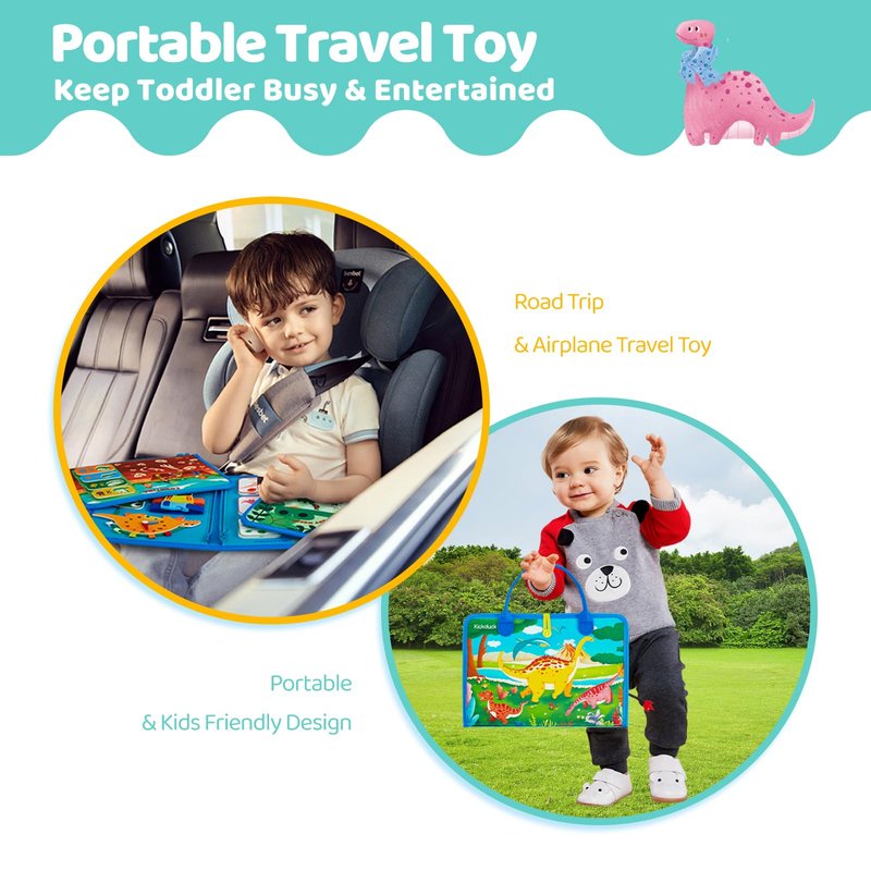 Kickduck Busy Board Montessori Toys for 3 4 Year Old Boys & Girls Birthday Gifts, Educational Activity Sensory Board Preschool Learning Toys for Toddlers, Travel Toys for Airplane Car (Dinosaur)
