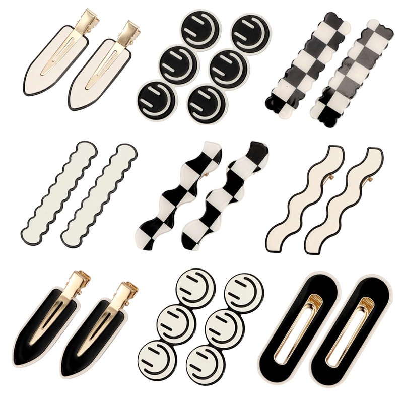 - 【🖤Simple and Chic🤍】: Black and white checkered hair clips are simple and stylish, 18pcs no crease hair clips, 9 different styles with combinations, smiley face, wave, teardrop, cookie, checkerboard checkerboard, it will be practical hair accessories for women.