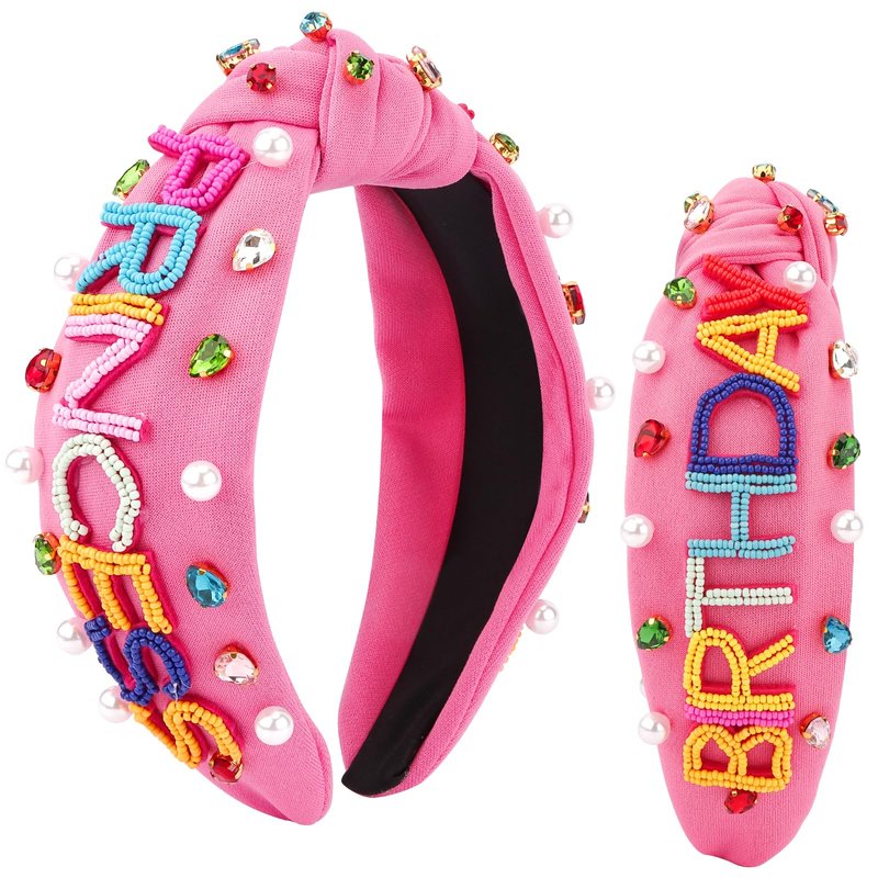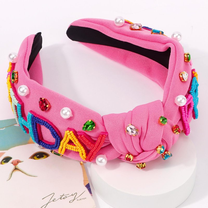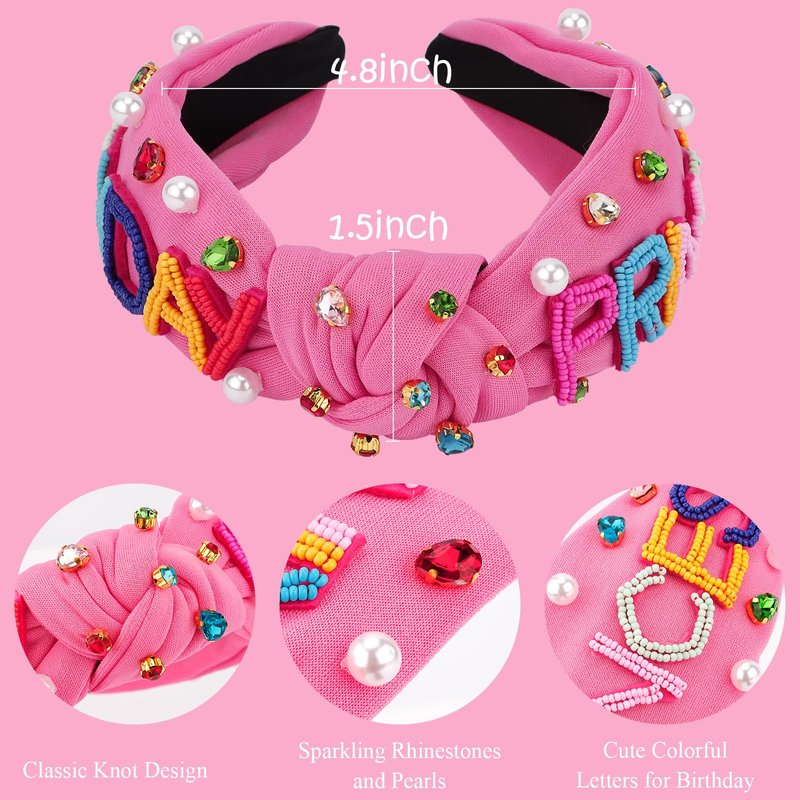 KICOSY Birthday Headband for Women Birthday Girl Headband Birthday Headband Tiara Pink Knot Headband for Girls Beaded Headband Candy Accessories Rhinestone Headbands for Women Party Decorations Gifts