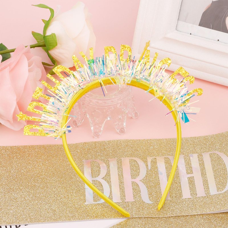 - š¼ćPERFECT BIRTHDAY PARTY DECORATIONSćDifferent color birthday hair bands and sash set is the perfect decoration for a girl's birthday party. Take beautiful and fun photos with your best friend at the party with this sparkling birthday hair bands and make happy memories!