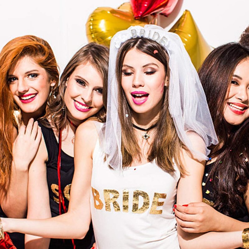 - Silver fashion bride crown---- To Make bride and your team bride stand out with these unique Bachelorette Party Decorations Kits for bridal party. This is a memorable gift to the bride or bridesmaid gifts.