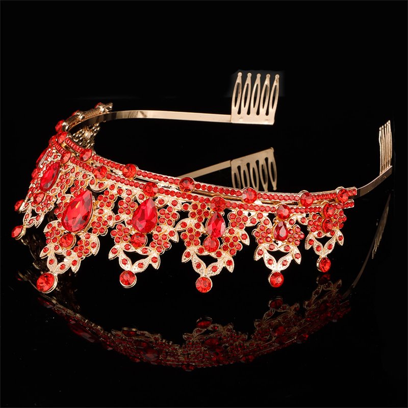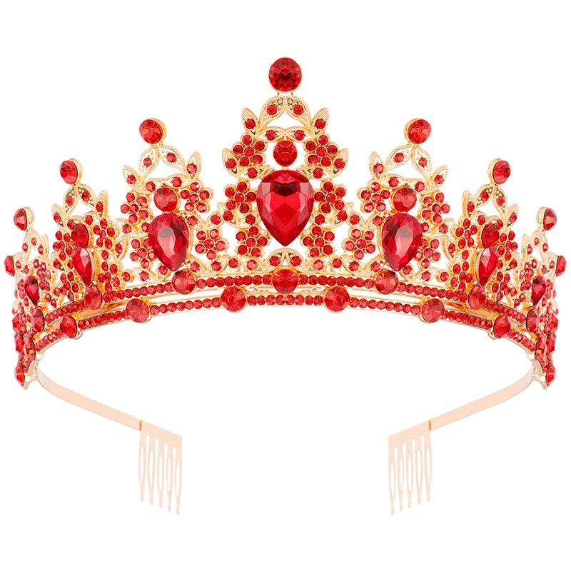 KICOSY Crown and Tiaras for Women Birthday Headband Red Crystal Queen Crowns with Comb Princess Tiara for Girl Masquerade Prom Party Cosplay Halloween Costumes Ballot Girls Hair Accessories