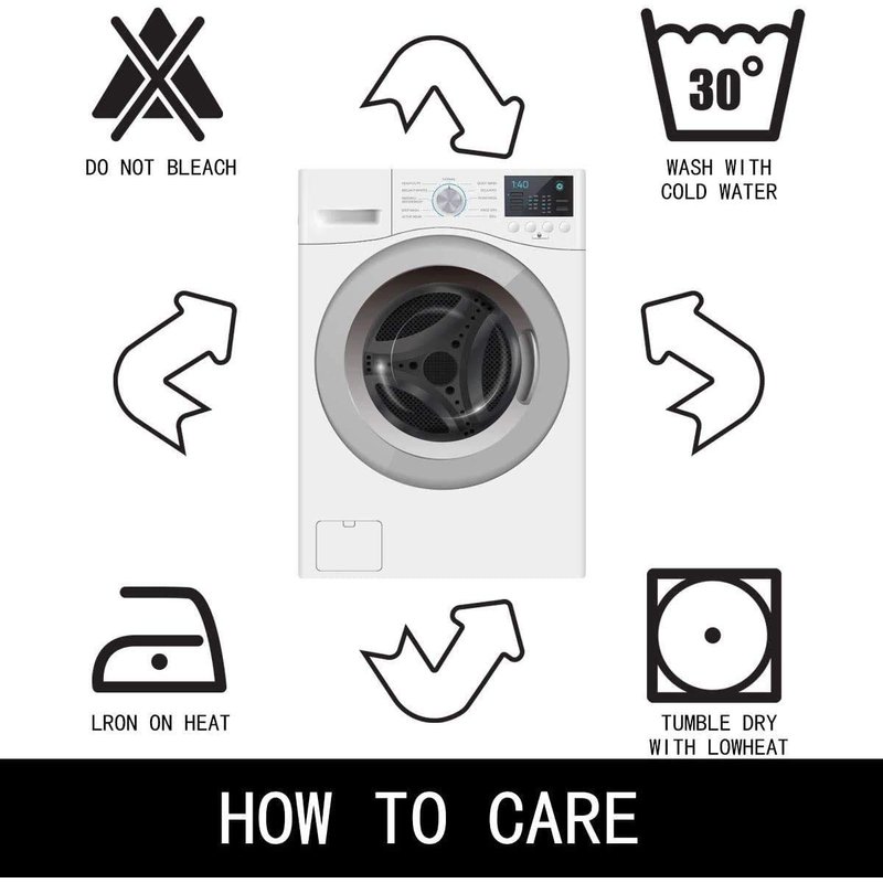 Notice: 1. Don’t bleach it. 2. Machine wash, hand wash or wipe clean with a damp cloth.
