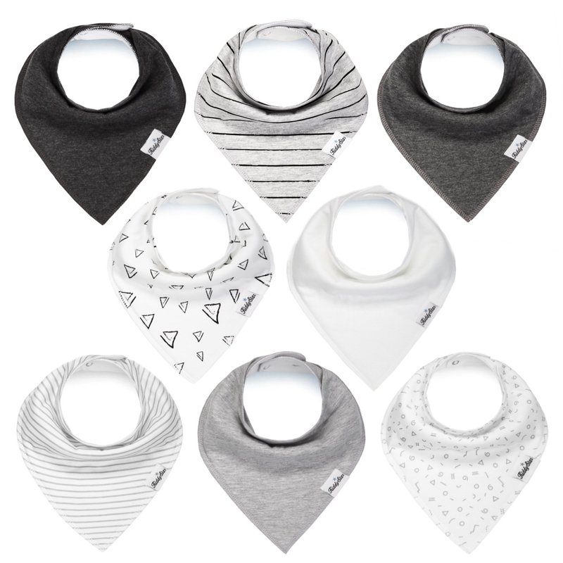 - ✅Drooling Bibs Set to Gift: Our pack of five unisex baby bibs makes the perfect gift for expecting or new moms. With easy wash and dry capabilities, these bibs save toddlers from messy clothes and endless laundry. The gender-neutral black and white prints add charm to any outfit, making them a practical yet stylish accessory for daily wear.