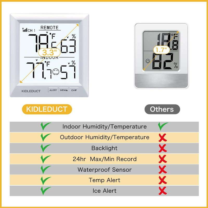 KIDLEDUCT Indoor Outdoor Thermometer Wireless Battery Powered, High Precision Inside Outside Humidity Temperature with Alert, 10S Backlight Weather Thermometers with 1 Sensor, 330ft Wireless, White