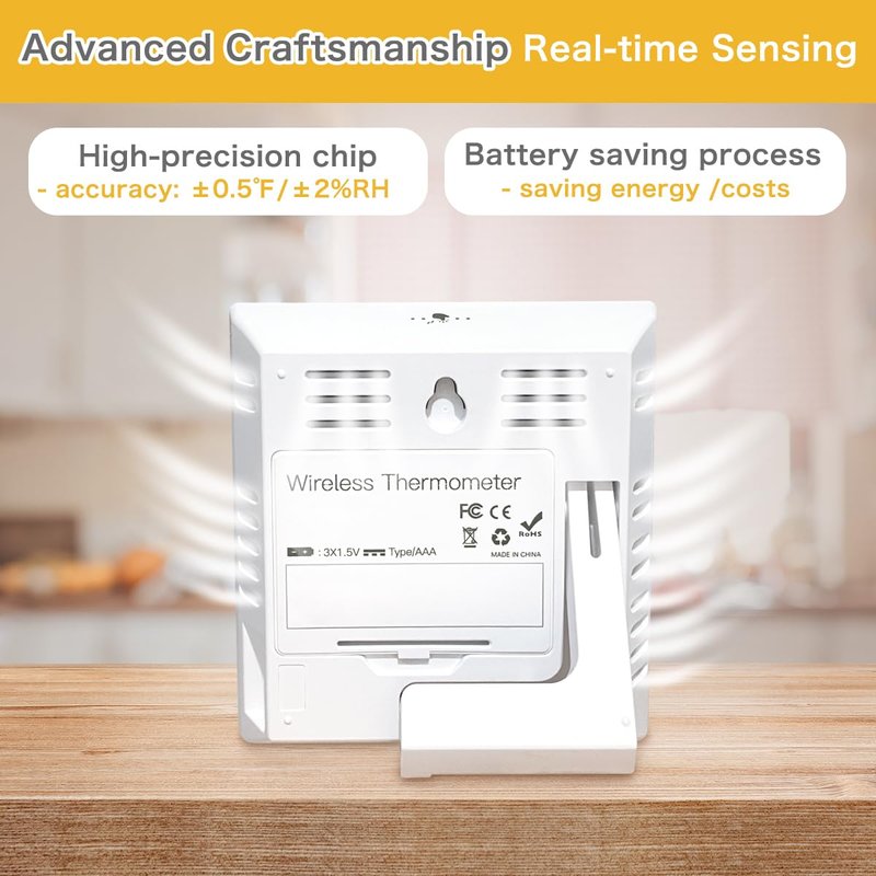 - High Precision & Battery Saving -- using imported precision measurement chips and process technology to obtain accurate indoor/outdoor temperature and humidity.