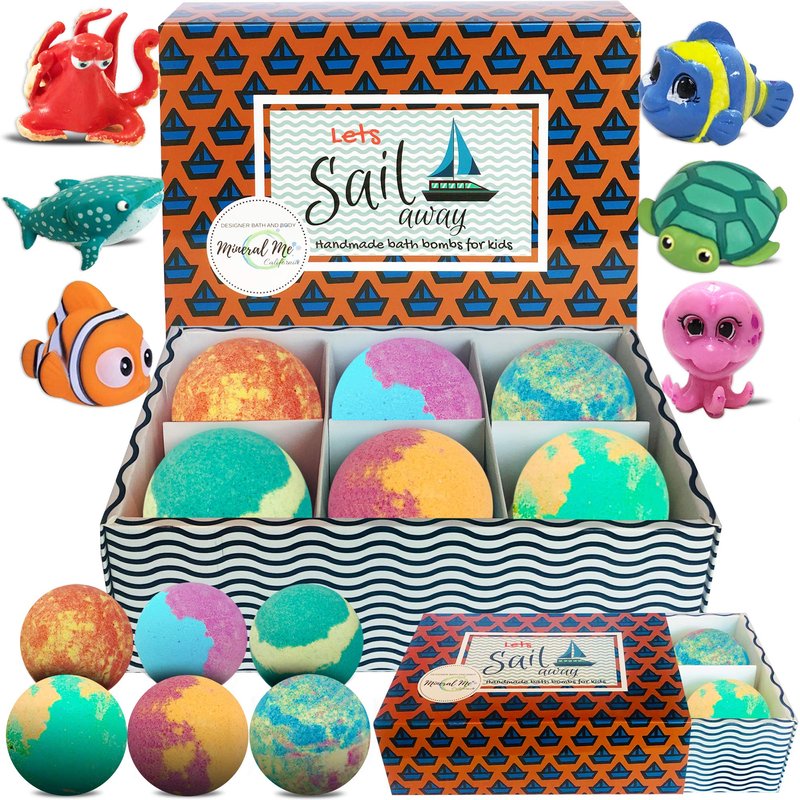 - 6 Large 4.2 oz. colorful bath balls for kids with toys inside (sea animal surprise toy reveals when they fizz out!)These essential oil bath bombs makes make bath time fun and relaxing for kids 3, 4, 5, 6 ,7, 8, 9 year old