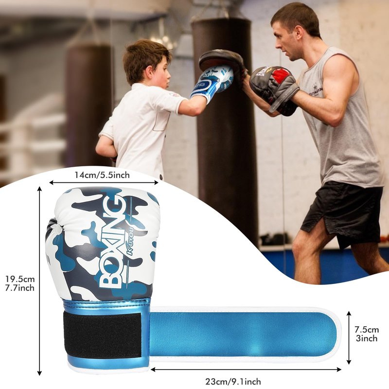 - 【4 oz Pro Boxing Gloves】with cartoon style and blue/ red bright color design, are loved by kids, boys, and girls. 4oz kids boxing gloves fit for children, recommend for 3 to 9 year old. Ideal for MMA, Boxing, Muay Thai, Kickboxing, Judo, Karate, Self Defense, Krav Maga Training.