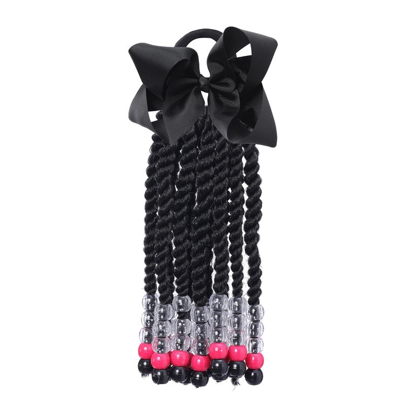 Kids Braid Ponytail Extension with Elastic Bowknot Tie Clip in Beads Braids Hair Extensions Braids Hair Extensions Wig for Children Girls Wigs with Bead Decoration Synthetic Hairpiece Black