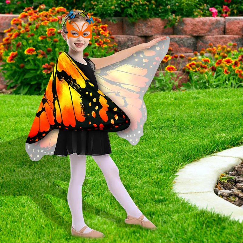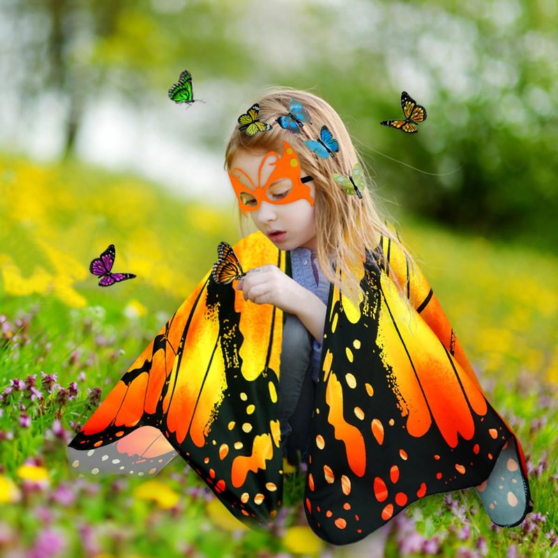 - 【Unique Design】24 years newest butterfly costume kids set consists of butterfly wings and Butterfly Hair Clip Small in the set features; crafted from soft wearable comfortable and breathable fabrics; When perfectly matched with the colorful face mask in the set accessories, it will surely be loved by your kids and become the coolest and brightest focal point in parties and role plays.