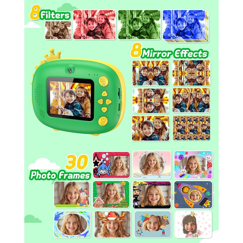 - STORE YOUR MEMORIES, PRINT YOUR JOYS: Watch your child's imagination come to life with our 2-in-1 kids print camera. It includes photo/video shooting, instant printing modes, and limitless possibilities for capturing and reliving magical moments