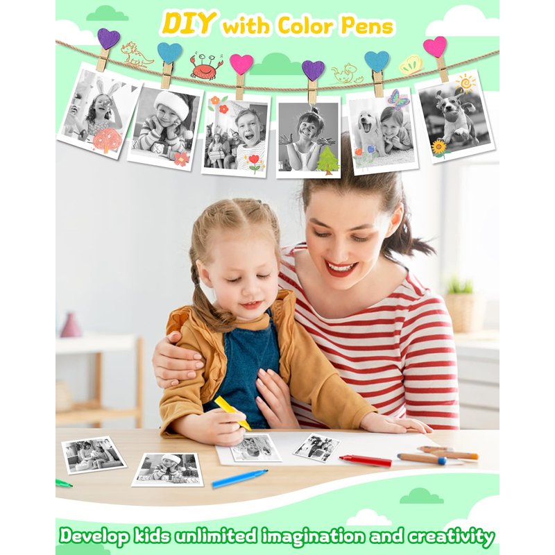 - LESS COLOR, MORE CREATIVITY: Our kids instant camera prints black and white pictures, so kids can unleash their creativity by coloring their own photos with the included color pencils. It's a unique way to encourage their imagination and artistic skills