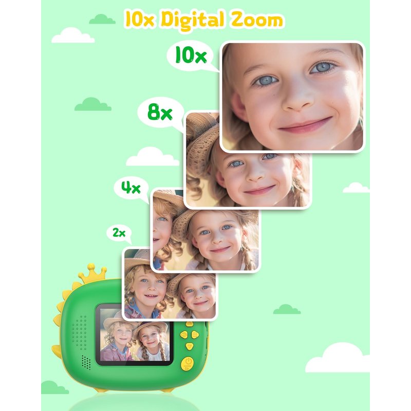 - 10X ZOOM FOR PERFECT SHOTS: With our kid camera's impressive 10x zoom, you can capture amazing moments, even from a distance. Help your budding young photographers explore their full potential and take unforgettable photos