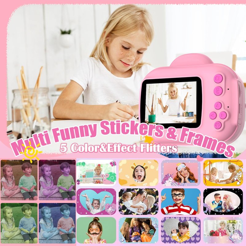 Kids Camera Instant Print Camera for Kids, Christmas Birthday Gifts for Girls Boys, 1080P HD Digital Video Cameras for Toddler, Portable Camera Toy for 4 5 6 7 8 9 10 Year Girl with SD Card (Pink)