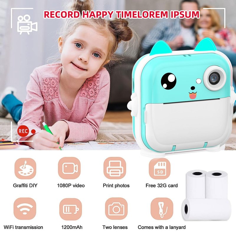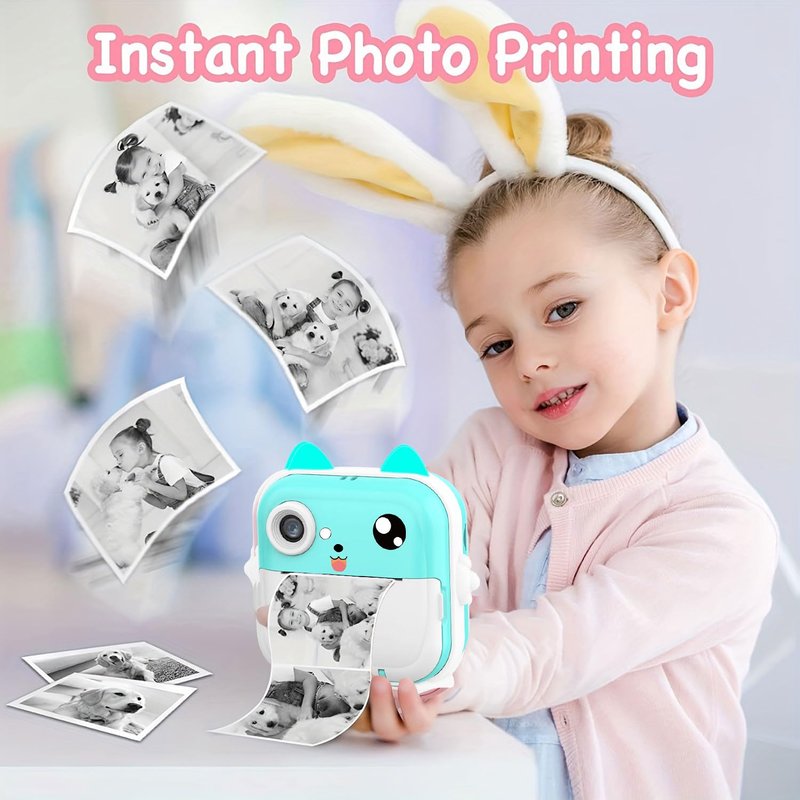 - This kids instant camera adopts advanced inkless technology to print without toner. Kids can instantly freeze and print images on 2.16*3.15inch (5.5*8cm) skin-friendly paper in seconds with a simple press. (3 Rolls Print Paper for up to 150 photos are included in the package)