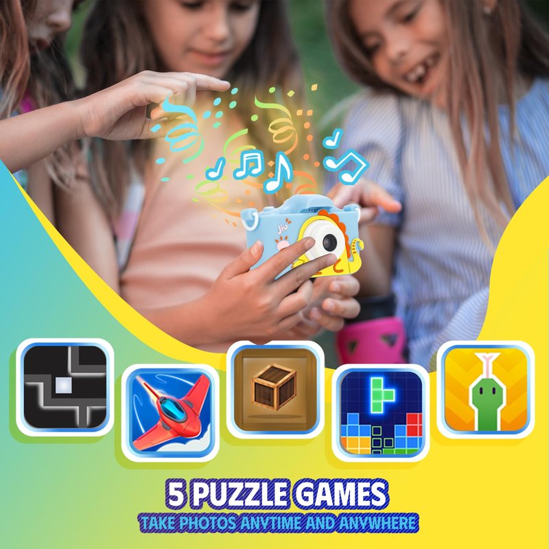 - 【 Multi functional 】 Upgrade to new children's cameras and portable camcorders. It has more features, including photo taking, video recording, playback, gaming, and date settings. Comes with a variety of puzzle games, including five motion control games, to bring more fun to children. In addition, there are 28 scene options for photos. Use the included card reader to download photos and videos to your computer and share them with family and friends