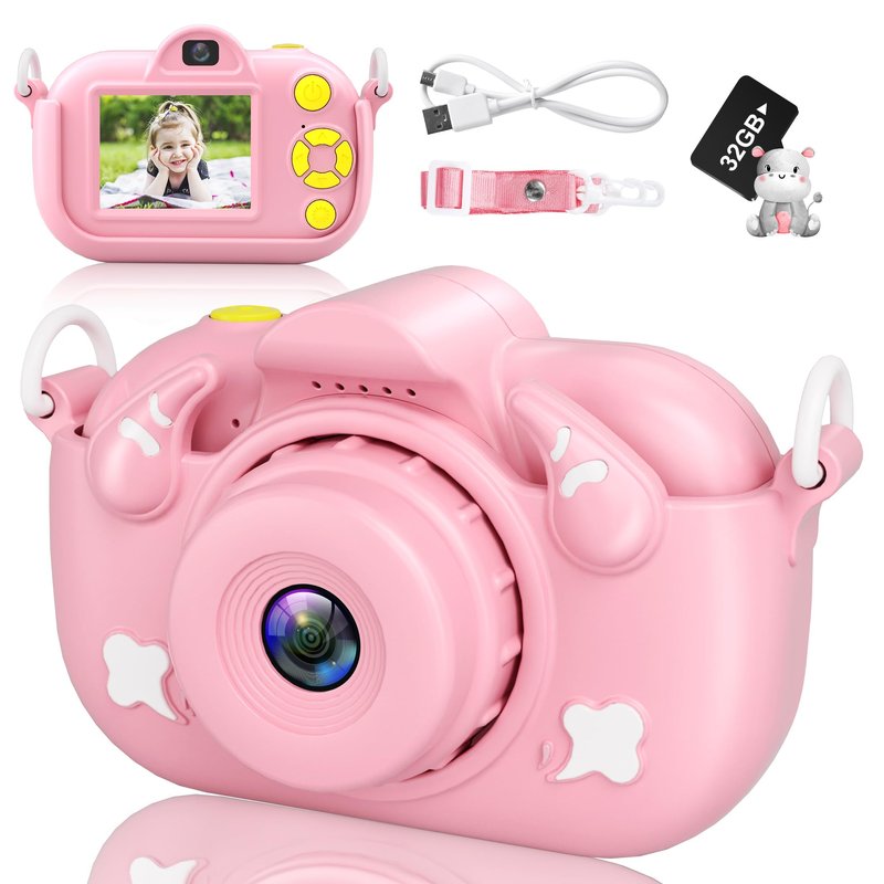 - 32GB SD CARD & LONG LIFE BATTERY: This toddler digital camera features a built-in 32GB SD card that can store thousands of photos. You can easily transfer images to mobile phones and computers using the included USB cable, perfect for capturing child's precious moments. The children camera is equipped with a high-capacity rechargeable battery that lasts 1.5 to 2 hours on a full charge, making it ideal for family gatherings or trips