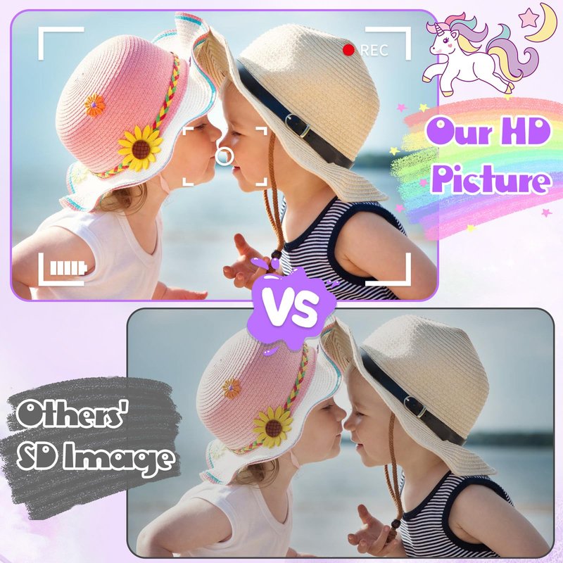Kids Camera Unicorn Toys for Girls, Digital Camera for Kids Age 3-8 Toddler Travel Toys, Birthday Gift for Girls 3 4 5 6 7 8 Year Old Christmas, HD 1080P Video Camera, 32G SD Card Included (Purple)